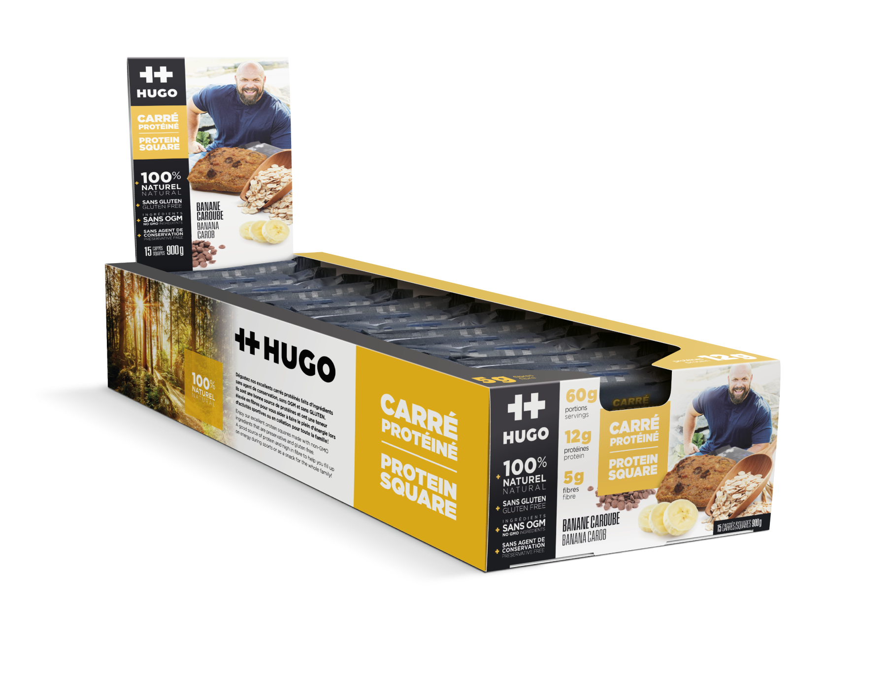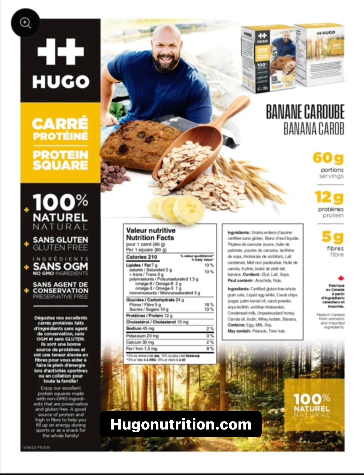 60G CARRÉ PROTÉINÉ + SANS AGENT DE CONSERVATION + INGRÉDIENTS SANS OGM + SANS GLUTEN