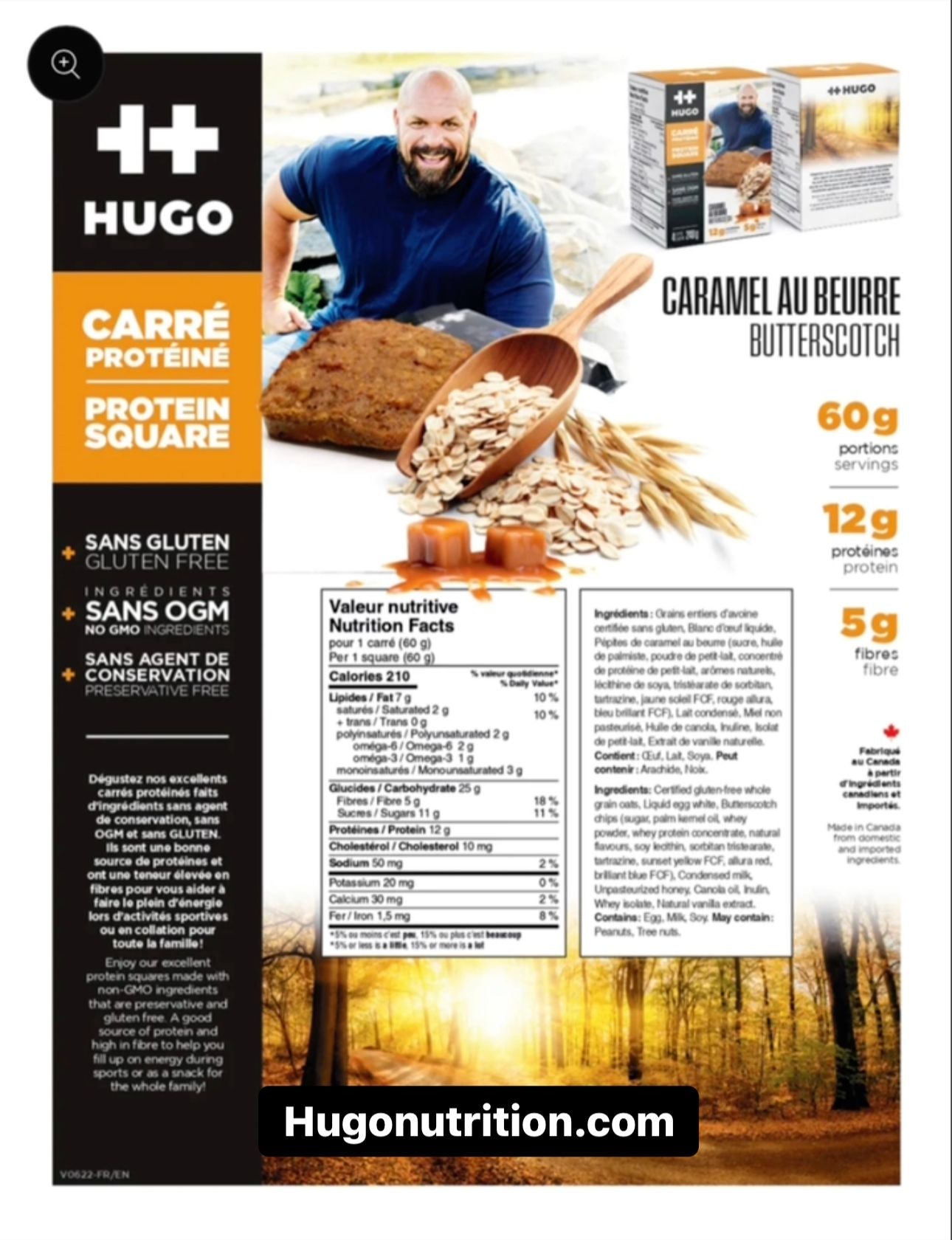 60G CARRÉ PROTÉINÉ + SANS AGENT DE CONSERVATION + INGRÉDIENTS SANS OGM + SANS GLUTEN
